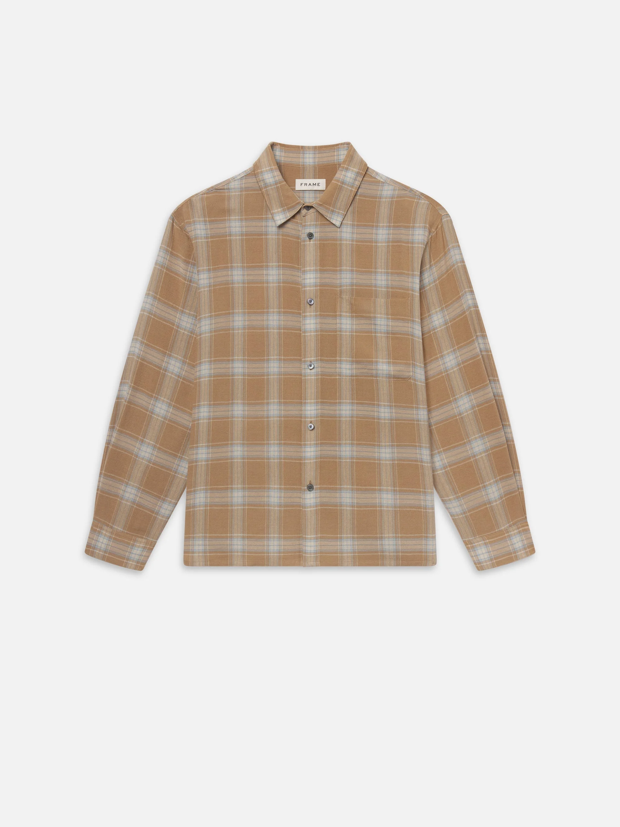 Traditional plaid gets a refresh in neutral colorways. The soft, pared-back design features a single pocket at the chest, spread collar and button cuffs. Leave it open over a tee as you head out the door. Materials & Care Dry Clean Only 85% Viscose/15% Wool 28" Long From Shoulder MS25WSH008-BEPL