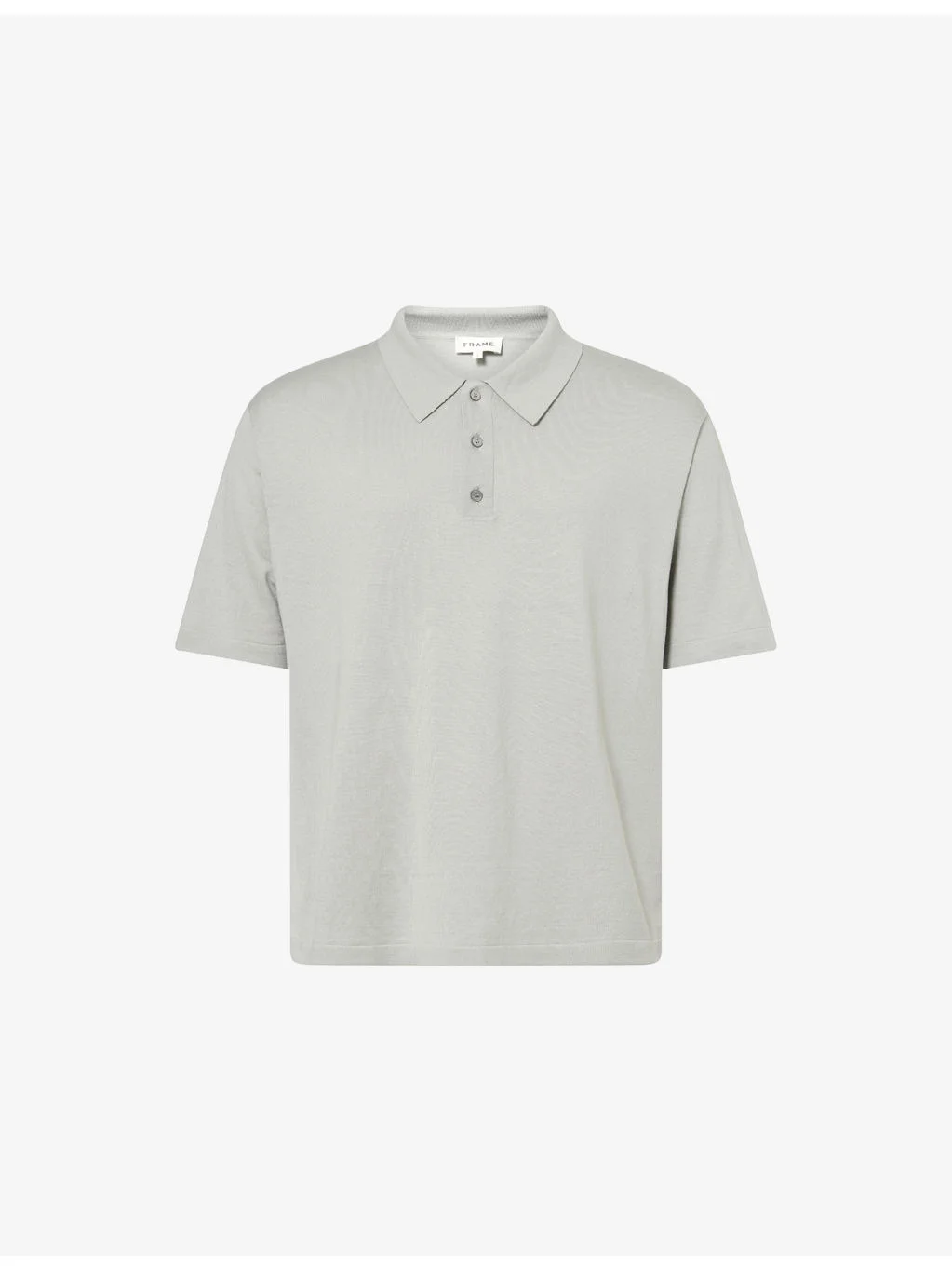 PRODUCT DETAILS - FRAME silk-cotton knit polo shirt - 70% silk, 30% cotton - Exposed button fastening at front - Regular fit, polo collar, short sleeves - Dry clean - Model is 6ft 2in/1.88m and wears a size medium - Lightweight, slight stretch Ref: R04465421