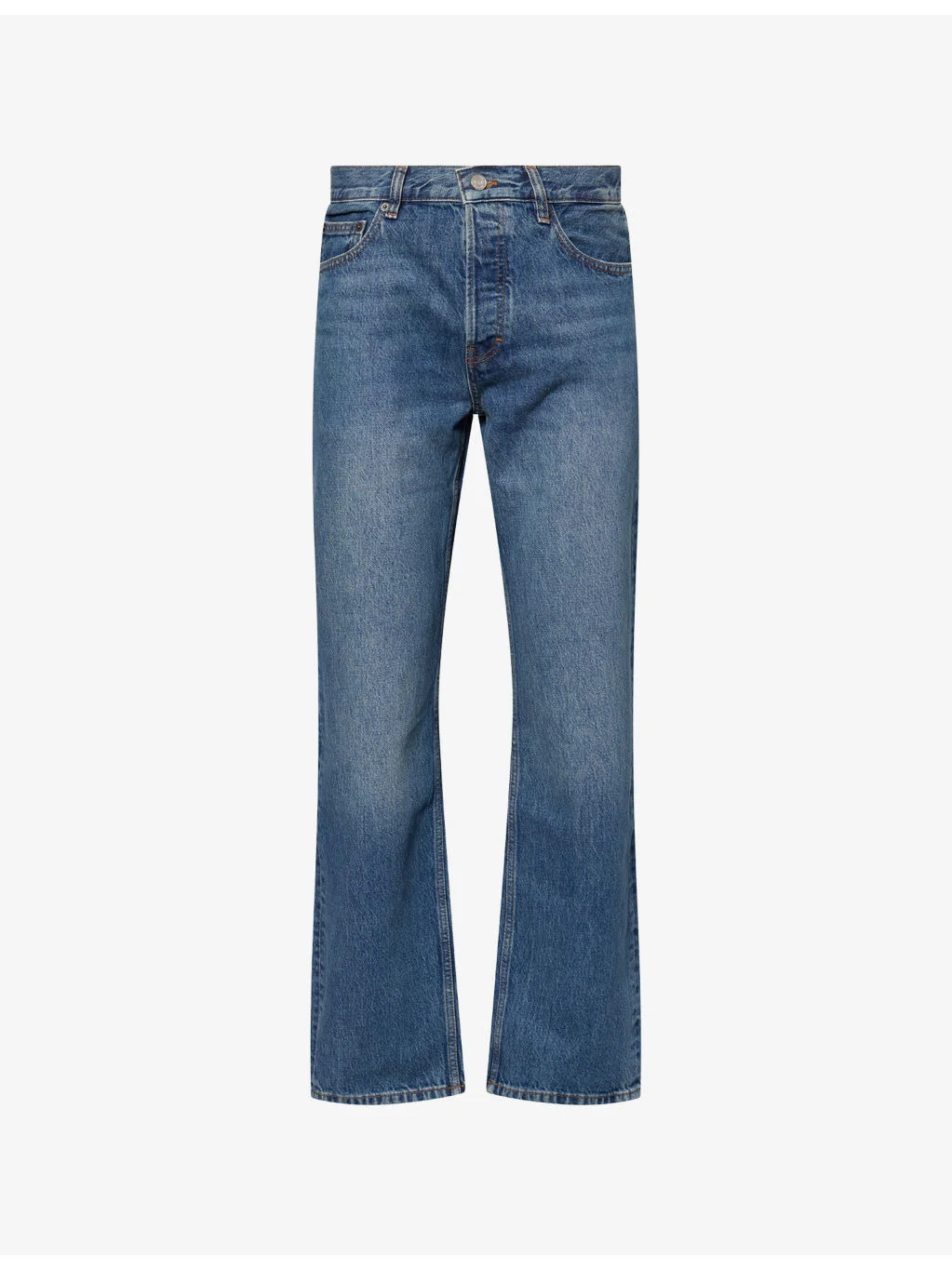 PRODUCT DETAILS - FRAME denim jeans - 100% cotton - Exposed button and concealed zip-fly fastening at front - Relaxed fit, mid-rise, straight leg, structured waistband with belt loops, five pockets, contrast stitching, branded silver-toned hardware - Machine wash at 30°C - Made in Turkey - Size UK 30: rise 10in / 25.5cm, inside leg 32.5in / 82.5cm, leg opening 18in / 45.5cm - Model is 6ft 2in/1.88m and wears a size UK 30 - Midweight, non-stretch Ref: R04538878