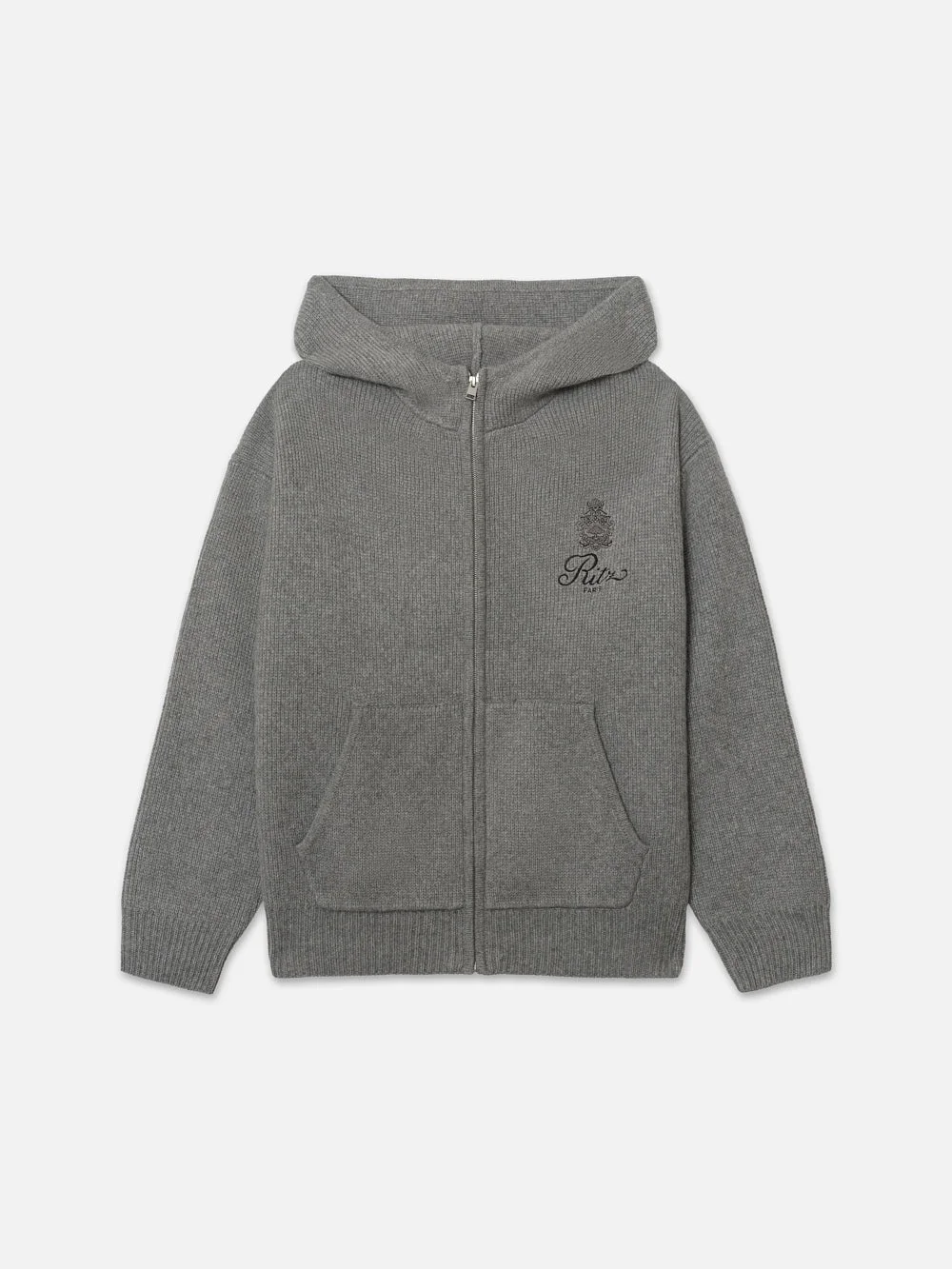 For a staple that exudes casual opulence, look to this 100% cashmere Full Zip Hoodie from FRAME x Ritz Paris's eagerly awaited collaboration—featuring the timeless embroidered emblem of the world's most luxurious hotelier. Pair it with the coordinating Cashmere Shorts. Each piece from the FRAME x Ritz Paris collaboration is crafted from luxe materials and designed to evoke the opulence and comfort of staying inside the world's most luxurious hotels. Materials & Care Dry Clean Only 100% Cashmere 27" Long From Shoulder RM23KSW002-WRGY