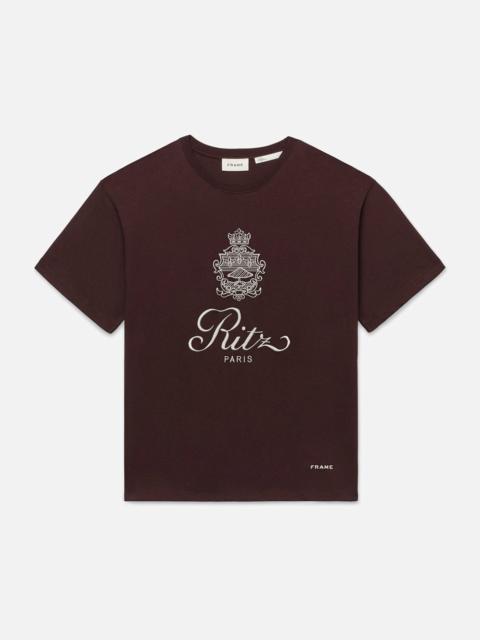 Time to level up from the university tee you've been wearing since freshman year? Show the world whose team you're on now in a 100% cotton tee with a soft, substantial handfeel and the Ritz Paris and FRAME logos at the front. Perfect for pairing with jeans, joggers, and athletic shorts. Each piece from the FRAME x Ritz Paris collaboration is crafted from luxe materials and designed to evoke the opulence and comfort of staying inside the world's most luxurious hotels. Materials & Care 100% Cotton Machine Wash Inside Out 28.25" Long From Shoulder LMTS0429-NAV