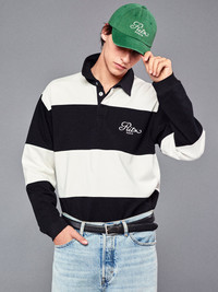 The Ritz Paris collection presents a polo shirt that cues into a sporty-preppy aesthetic. Black-and-cream stripes carry straight from the body to sleeves, creating clean, consistent blocks that solidify its timeless appeal. Team the relaxed fit with the Ritz Baggy Jean for a contemporary duo. Materials & Care Machine Wash Cold 100% Cotton 27.5" Long From Shoulder MP25JSH001-CRBK