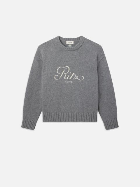 A luxuriously soft 100% cashmere knit done in classic crewneck style with extra attention to detail: ribbed cuffs and hem, an exaggerated neckline and drop shoulder for modern fit, and the Ritz Paris and FRAME logos embroidered in contrasting white thread, in homage to stylish hospitality and hospitable style. Materials & Care Dry Clean Only 100% Woolen Cashmere 24.5" Long From Shoulder MP25KSW030-GRYM