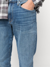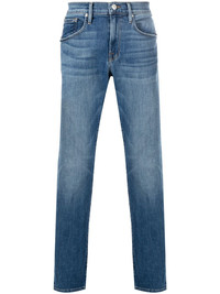 straight-leg mid-rise jeans straight-leg mid-rise jeans from FRAME featuring blue, cotton, mid-rise, belt loops, concealed front fastening, classic five pockets and straight leg. Made in United States Composition Cotton 100% SIZE & FIT Model measurements Height 6 ft 2 in(1.88 m) Bust/Chest 38.18 in(97 cm) Hips 37 in(94 cm) Waist 29.92 in(76 cm) FittingInformation This piece fits true to size. We recommend you get your regular size Cut for a relaxed fit Made with a mid-weight stretch fabric