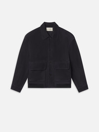 Crafted from 100% suede with a refined matte texture, this jacket features a button-front closure, flap patch pockets, and ribbed trim at the hem. DETAILS - Clean Professionally By A Leather And Suede Specialist - 100% Goat Leather - 26" Long From Shoulder - MP26LJA004-DKNV