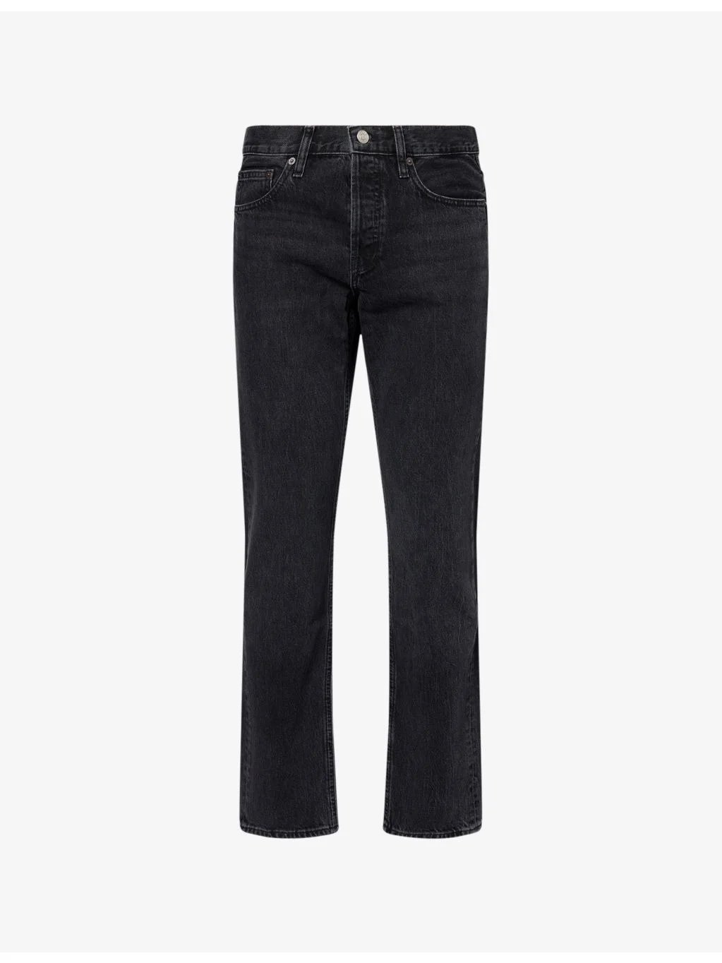 PRODUCT DETAILS - FRAME denim jeans - 100% cotton - Exposed button and concealed zip-fly fastening at front - Regular fit, mid-rise, straight leg, structured waistband with belt loops, five pockets, branded silver-toned hardware, whiskering - Machine wash at 30°C - Size UK 30: rise 11.5in / 29cm, inside leg 32in / 81cm, leg opening 15.3in / 38.8cm - Model is 6ft 2in/1.88m and wears a size UK 30 - Midweight, non-stretch Ref: R04538877