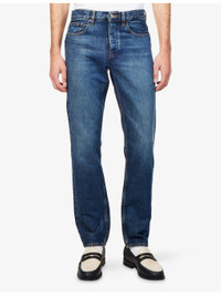 PRODUCT DETAILS - FRAME denim jeans - 100% cotton - Button and button-fly fastening - Regular fit, mid-rise, straight leg, structured waistband with belt loops, five pockets, mid-wash, contrast stitching, branded hardware - Machine wash cold - Made in Turkey - Size UK 30: rise 11in / 28cm, inside leg 31in / 79cm, leg opening 14.5in / 37cm - Model is 6ft 2in/1.88m and wears a size UK 30 - Midweight, non-stretch Ref: R04538869