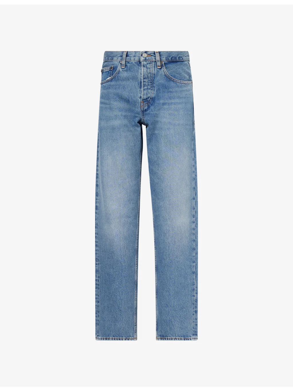 PRODUCT DETAILS - FRAME denim jeans - 100% cotton - Button and button-fly fastening - Regular fit, mid-rise, straight leg, structured waistband with belt loops, five pockets, mid-wash, contrast stitching, branded hardware - Machine wash cold - Made in Turkey - Size UK 30: rise 11in / 28cm, inside leg 31in / 79cm, leg opening 14.5in / 37cm - Model is 6ft 2in/1.88m and wears a size UK 30 - Midweight, non-stretch Ref: R04538869