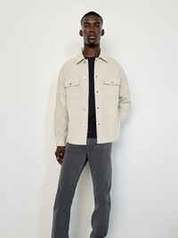 When in doubt, top your look with a textural neutral. The Tweed Overshirt Jacket has a boxy silhouette crafted from a wool blend for countless pairing possibilities. Complete with a spread collar, reflective buttons down the front, and matching hardware on the chest flap pockets. Materials & Care Dry Clean Only 46% Linen/16% Wool/14% Polyester/12% Poly Cotton/9% Alpaca/3% Nylon 28.75" Long From Shoulder MP25WJA024-DVTW
