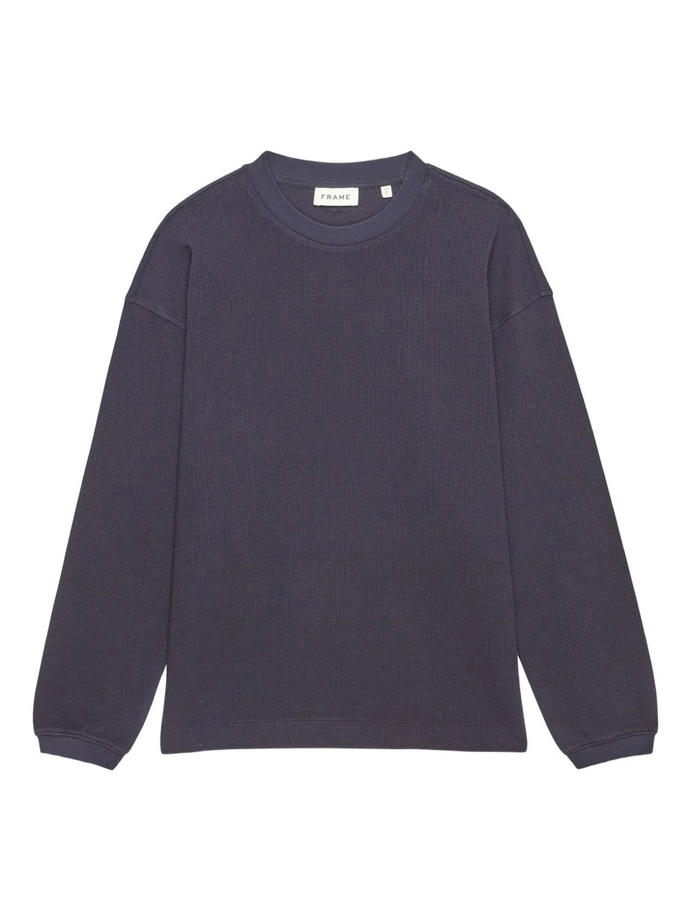 waffle-knit sweatshirt Highlights - Dark navy blue - Waffle knit - Long sleeves - Crew neck - Straight hem Imported Composition Cotton 100% Washing instructions Machine Wash