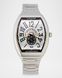 Franck Muller men's watch Approx. 41mm square case Stainless steel bracelet and hardware Silvertone dial with vintage Arabic numerals Seconds indicator at 6 o'clock Bracelet strap with folding clasp Seethrough case back Automatic movement Made in Switzerland