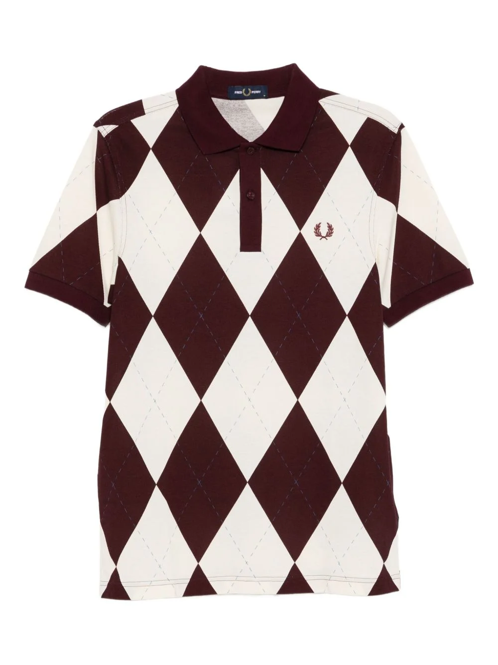 argyle-checked polo shirt Highlights - Burgundy - Front button fastening - Embroidered logo at the chest - Short sleeves Imported Composition Cotton 100% Washing instructions Machine Wash