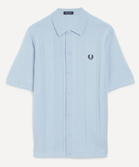 DETAILS Knit polo shirt Fred Perry branding embroidery detailing Classic polo shirt aesthetic Three button placket Ribbed hem and cuffs Embroidered Laurel Wreath logo on the chest Combed cotton knit Striped design Point collar Branded buttons Regular fit SIZE & FIT Model is 188cm/6'2"; Chest: 89cm; Waist: 28cm and wears a size M COMPOSITION & CARE 100% Cotton Machine wash