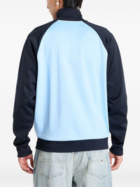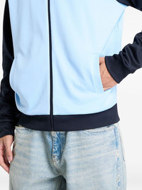 contrast sleeve track sweater Highlights - Blue - Logo embroidery - Zip fastening - Long sleeves - Ribbed hem - Ribbed high neck Imported Composition Outer: Recycled Polyester 59%, Cotton 41% Lining: Recycled Polyester 97%, Elastane 3% Washing instructions Read Manufacturer Guidelines