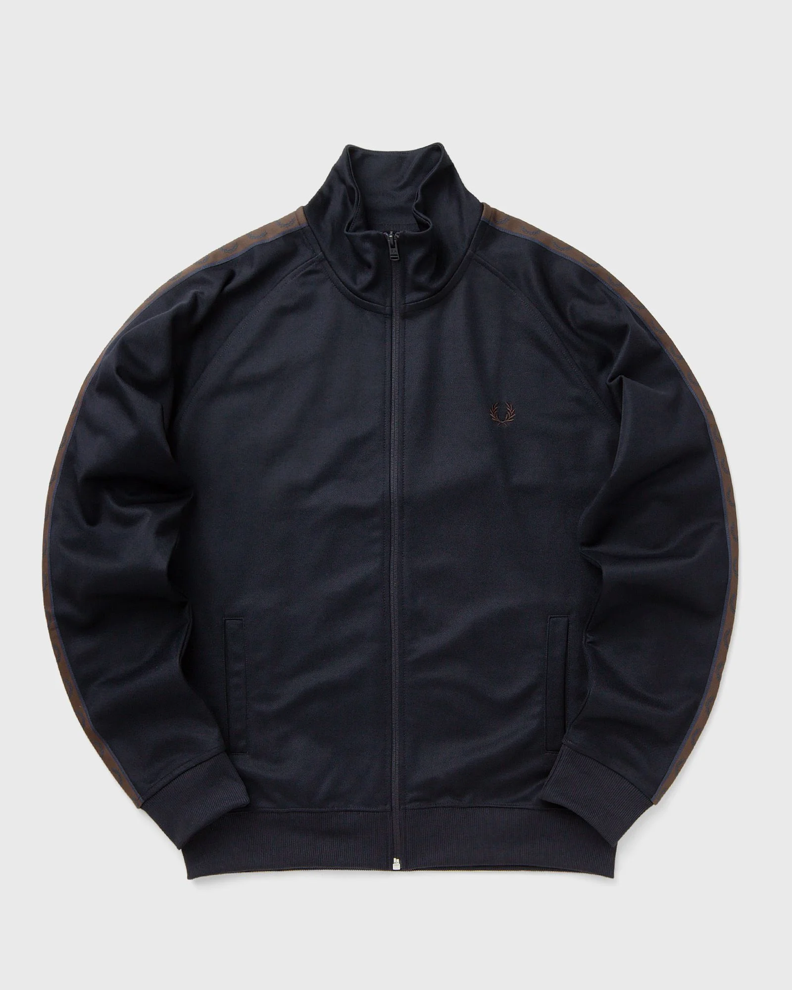 The product Fred Perry - CONTRAST TAPE TRACK JACKET in the color NAVY/BURNTOBACCO is available at BSTN. Article number: J5557-40A Gender: men Color: NAVY/BURNTOBACCO Material: 46% Cotton, 54% Polyester
