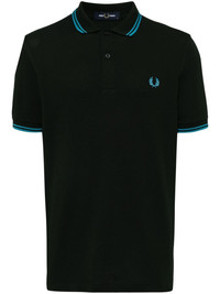embroidered logo T-shirt Highlights - Juniper green - Cotton - Embroidered logo - Stripe detailing - Ribbed cuffs - Polo collar - Straight hem Imported Composition Cotton 100%