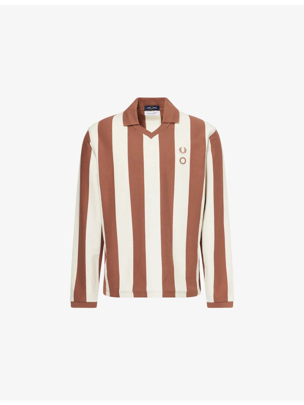 PRODUCT DETAILS - Fred Perry x Craig Green cotton-jersey polo shirt - 100% cotton; trims 97% cotton, 3% elastane - Polo collar - Elasticated cuffs - Regular fit, collar, V-neck, long sleeves, brand embroidery at front, all-over striped print, ribbed trims - Machine wash at 40°C - Model is 6ft 2in/1.88m and wears a size medium - Midweight, stretchy Ref: R04534328