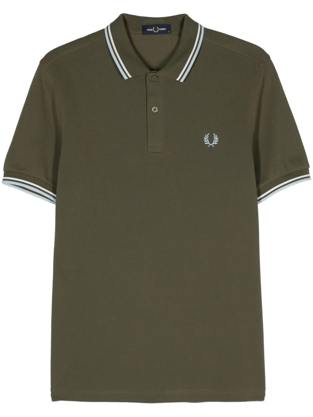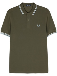 logo-embroidered cotton polo shirt Highlights - Olive green - Cotton - Pique weave - Embroidered logo at the chest - Stripe trim - Polo collar - Front button placket - Short sleeves - Straight hem Imported Composition Cotton 100%