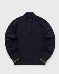 The Fred Perry half-zip sweatshirt is a versatile must-have for your wardrobe with its casual, minimalist design. A signature laurel wreath embroidery, double stripes at the cuffs and a classic funnel collar provide a signature Fred Perry vibe. - Funnel collar - Metal zipper with logo - Laurel wreath embroidery Article Number: M3574-R63 Gender: Men Color: NAVY/DARKCARAMEL Material: 100% Cotton