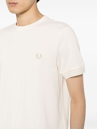logo-embroidered cotton T-shirt Highlights - Ecru - Cotton - Pique weave - Embroidered logo at the chest - Stripe trim - Crew neck - Short sleeves - Straight hem Imported Composition Cotton 100% SIZE & FIT FittingInformation Designed for a regular fit allowing for a comfortably loose fit throughout the body Made from a midweight non-stretch fabric, this piece offers minimal elasticity when worn This piece fits true to size – take your usual size