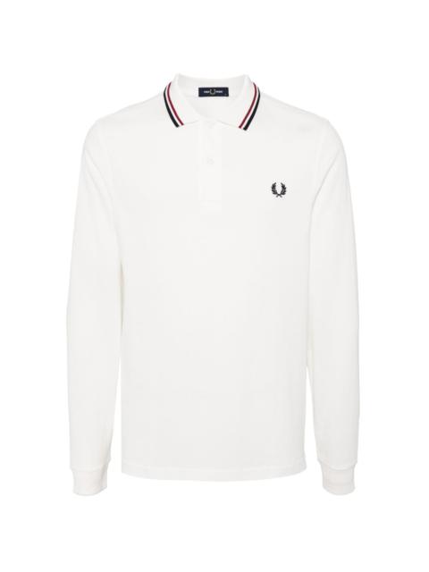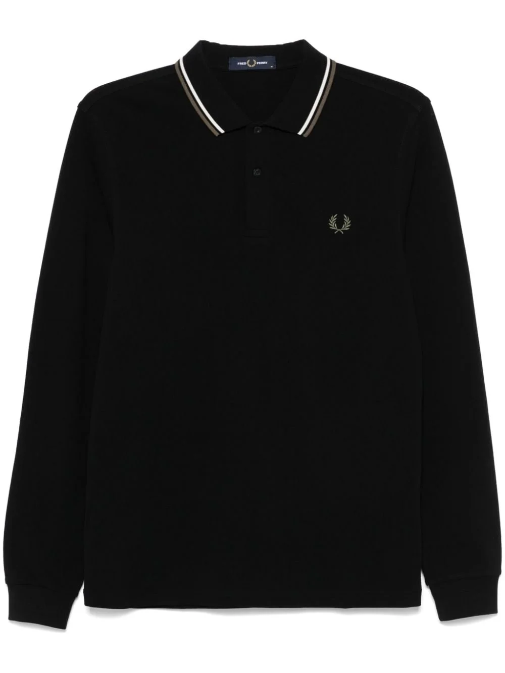 logo-embroidered polo shirt Highlights - Black - Cotton - Pique weave - Embroidered logo at the chest - Short front button fastening - Stripe trim - Polo collar - Long sleeves - Straight hem Imported Composition Cotton 100% SIZE & FIT Model measurements Height 6 ft 2 in(1.87 m) Bust/Chest 37.79 in(96 cm) Hips 37.79 in(96 cm) Waist 30.31 in(77 cm) Measurement CHEST 36.22 in(92 cm) LENGTH 26.37 in(67 cm) SLEEVE LENGTH 26.77 in(68 cm) Shoulder Width 16.14 in(41 cm) FittingInformation Designed for a slim fit, this polo shirt offers a comfortable fit that sits just away from the body Made with a lightweight knit, this piece offers some stretch