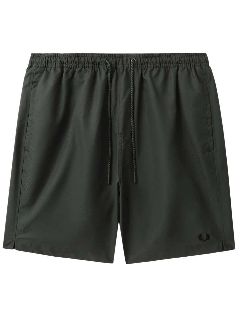 logo-embroidered shorts Highlights - Dark green - Elasticated drawstring waistband - Two side inset pockets - Rear patch pocket - Eyelet detailing Imported Composition Polyester 100%