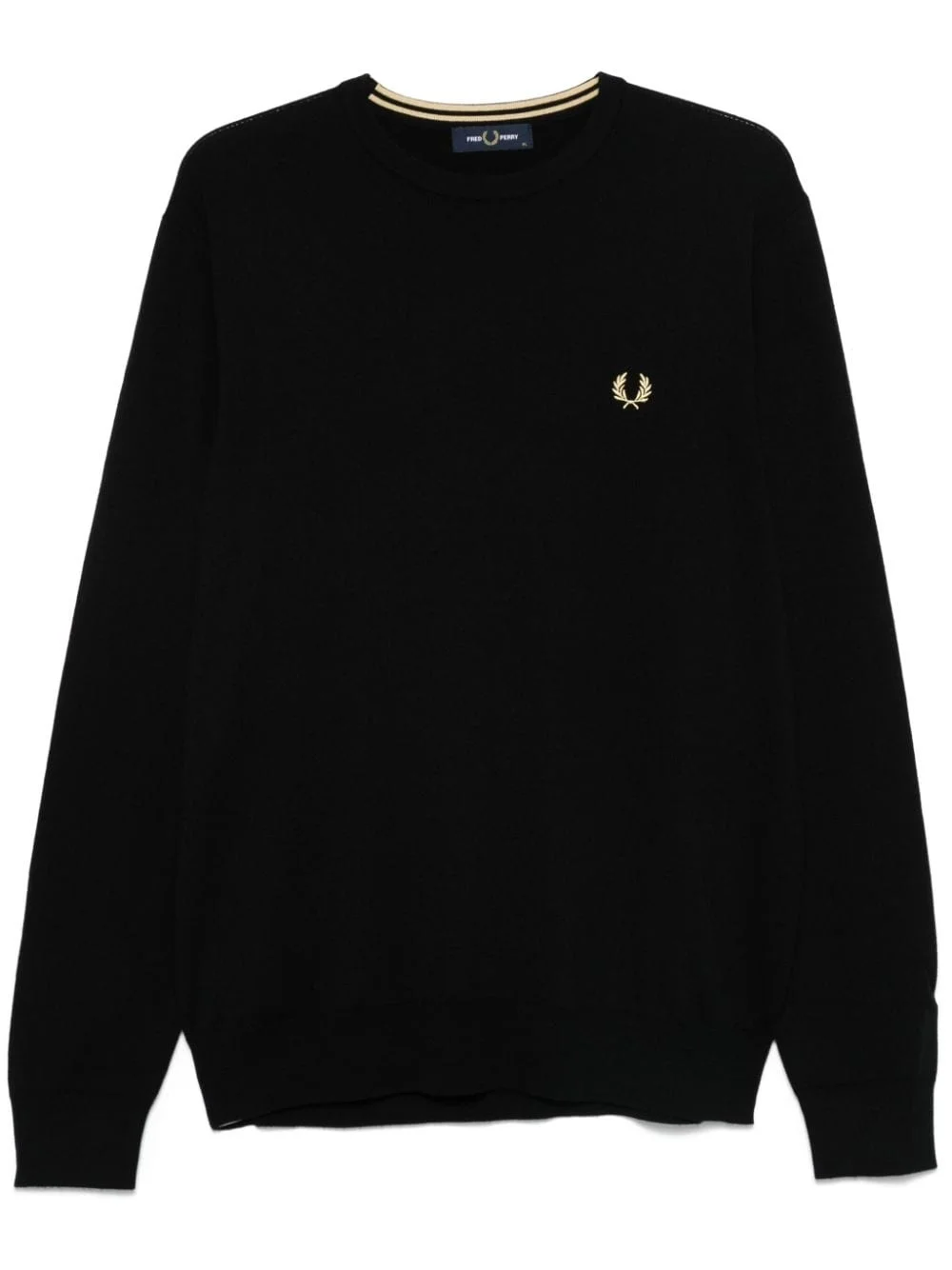 logo-embroidered sweater Highlights - Black - Wool-cotton blend - Knitted construction - Ribbed trim - Crew neck - Long sleeves - Embroidered logo at the chest - Straight hem Imported Composition Wool 54%, Cotton 46%