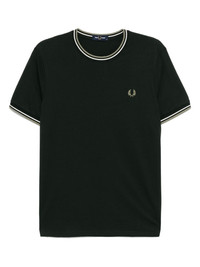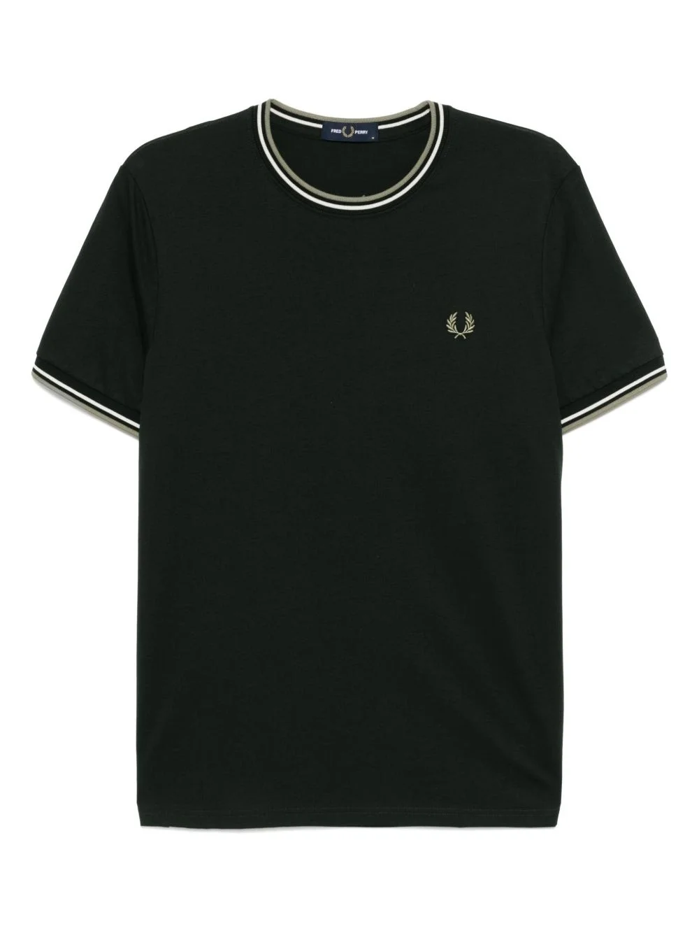 logo-embroidered T-shirt Highlights - Dark green - Crew neck - Straight hem - Stripe print Imported Composition Body: Cotton 100% Washing instructions Machine Wash