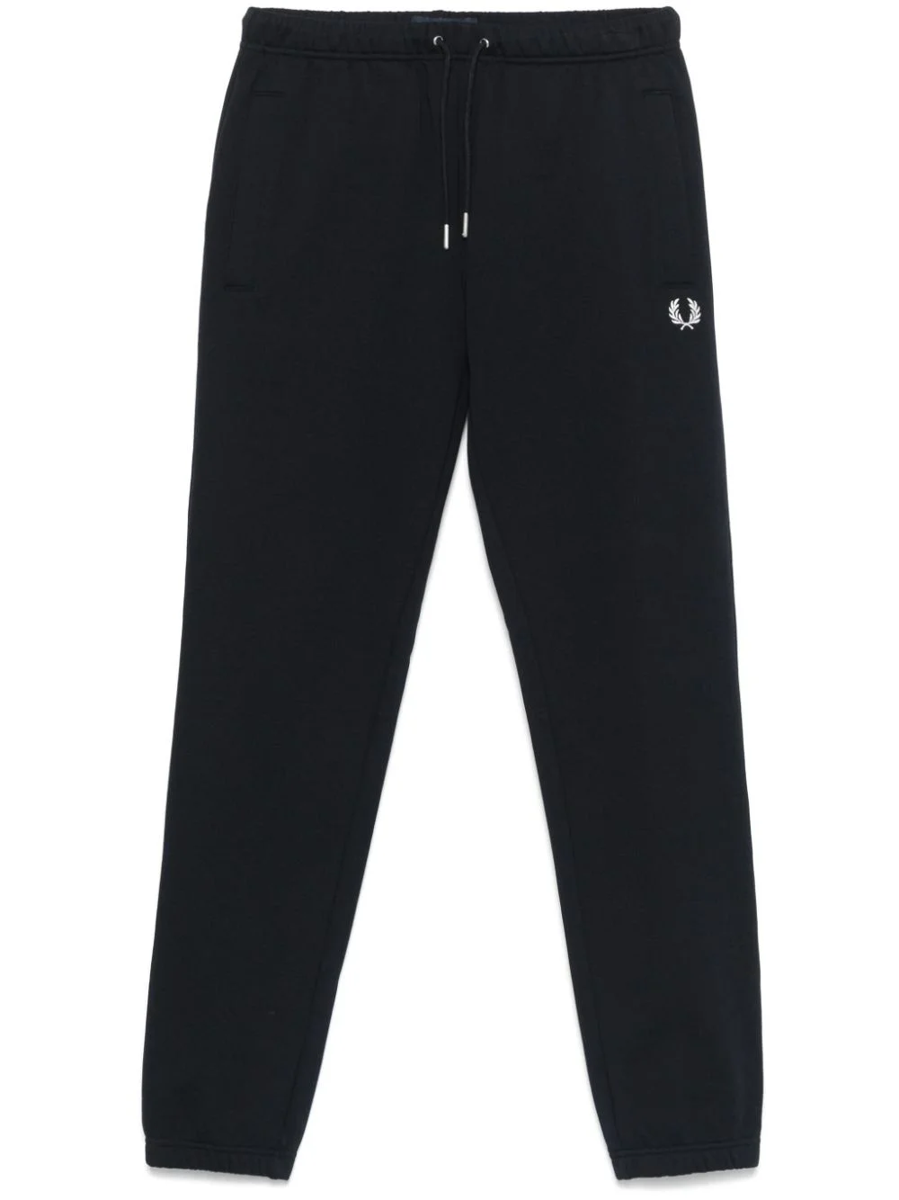 logo-embroidered track pants Highlights - Navy blue - Cotton - Jersey fleece - Elasticated drawstring waistband - Embroidered logo at the leg - Two side slit pockets - Rear jetted pocket - Elasticated ankles Made in Italy Composition Cotton 100% SIZE & FIT Model measurements Height 6 ft 0 in(1.84 m) Bust/Chest 35.82 in(91 cm) Hips 37 in(94 cm) Waist 28.34 in(72 cm) FittingInformation Designed for a slim fit, offering a comfortable fit that sits just away from the leg The elasticated waist allows for a comfortable fit Made from a midweight non-stretch fabric, this piece offers minimal elasticity when worn