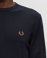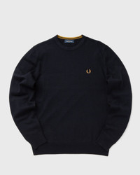 The classic Fred Perry crew neck jumper is built with a blend of ethically sourced merino wool and cotton for warmth, durability, and a bit of simple luxury. It’s designed with the characteristic twin tipping inside the neck and the Laurel Wreath embroidered logo on the chest. - Regular fit - Crew neck - Ribbed trims - Laurel Wreath embroidery Article Number: K9601-795 Gender: Men Color: NAVY Material: 48% Cotton, 52% Wool