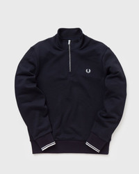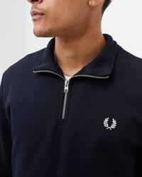 The Fred Perry half-zip sweatshirt is a versatile must-have for your wardrobe with its casual, minimalist design. A signature laurel wreath embroidery, double stripes at the cuffs and a classic funnel collar provide a signature Fred Perry vibe. - Funnel collar - Metal zipper with logo - Laurel wreath embroidery Article Number: M3574-608 Gender: Men Color: NAVY Material: Full: 80% Cotton, 20% Polyester
