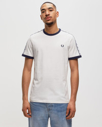 The Fred Perry Taped Ringer T-Shirt is made of a soft cotton jersey. It's finished with contrasting ribbing at the neckline and cuffs, as well as a Laurel Wreath sports band at the sleeve. A signature Laurel Wreath embroidery at the chest completes the design. Article Number: M4620-129 Gender: Men Color: SNOW WHITE Material: 100% Cotton