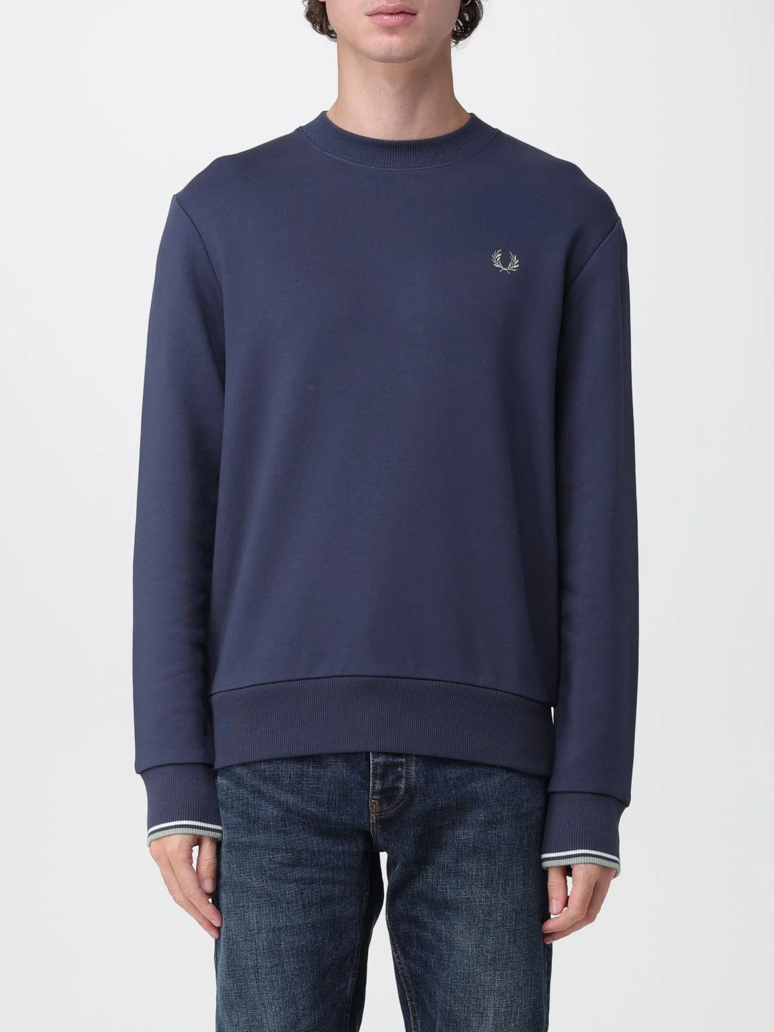 DESCRIPTION - Style: Basic - Logo: Contrasting, Embroidered - Model: Crewneck - Neckline: Crewneck - Shoulders: Regular - Sleeves: Long - Bottom: With straight hemline - Materials: Cotton - Pattern: Logo, Plain-colored DETAILS AND CARE Composition COTTON SIZE AND FIT Sizes not available Size and fit Regular fit Designer code: FPM753555 Z47 Giglio Code: H38945 Designer: Fred Perry Collection: Fred Perry Men Category: Clothing Fred Perry