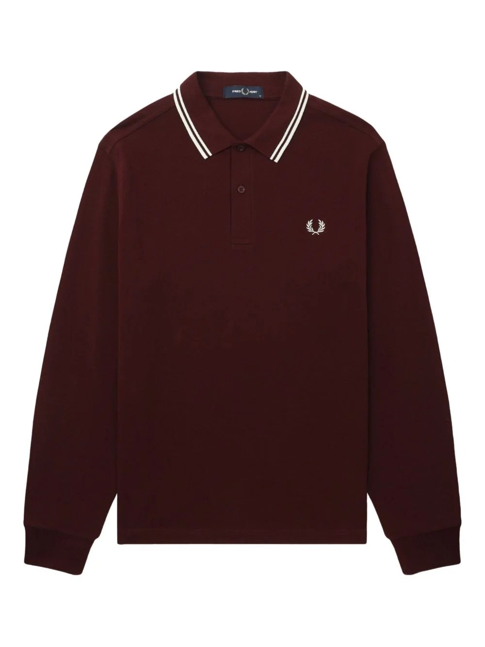 tipped-collar long-sleeve polo shirt Highlights - Dark-red - Long sleeves - Tipped collar - Front button placket Imported Composition Cotton 100% Washing instructions Read Manufacturer Guidelines