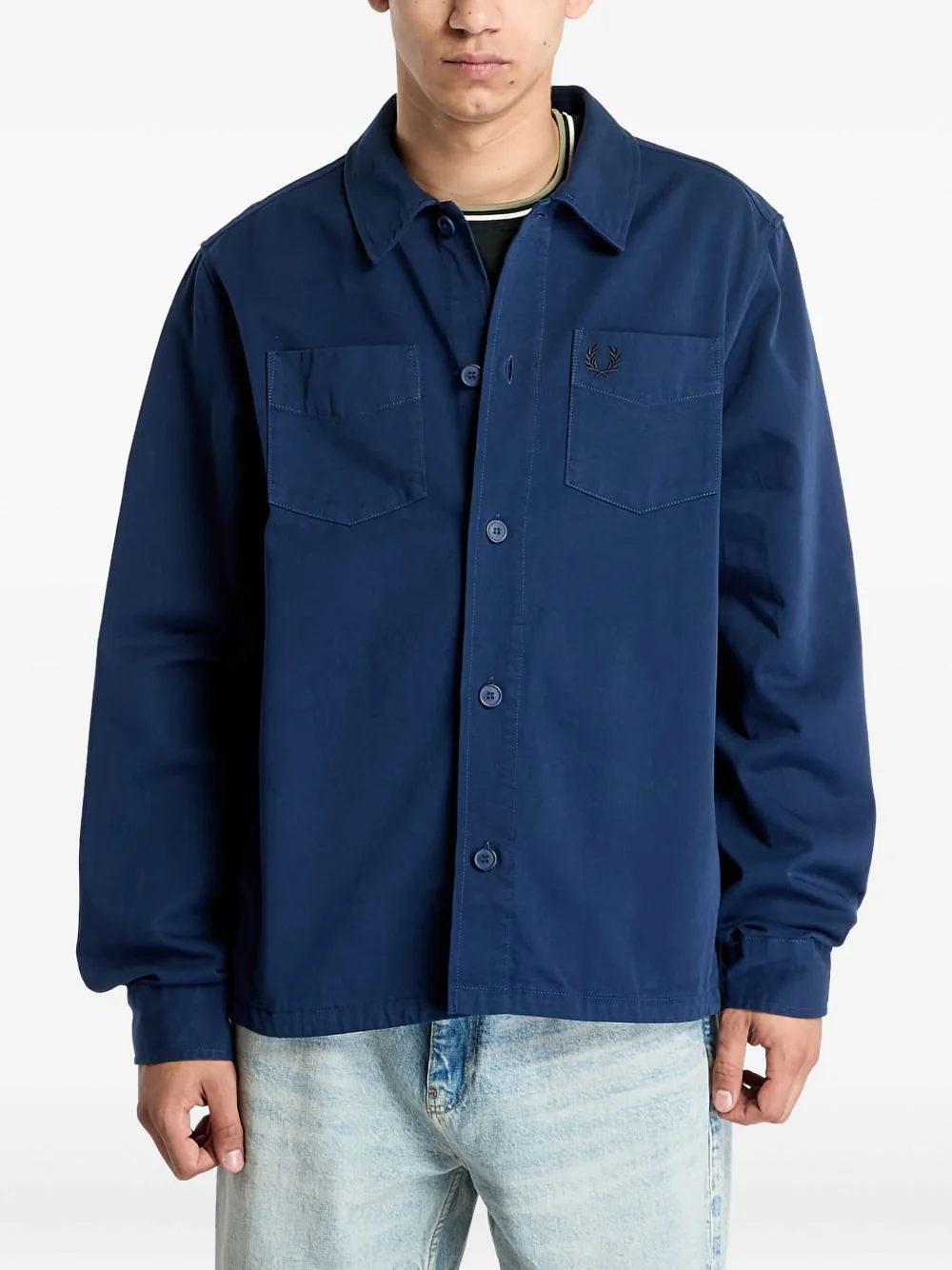 twill patch-pocket overshirt Highlights - Blue - Chest pockets - Button fastening - Long sleeves - Embroidered laurel wreath Imported Composition Cotton 100% Washing instructions Machine Wash