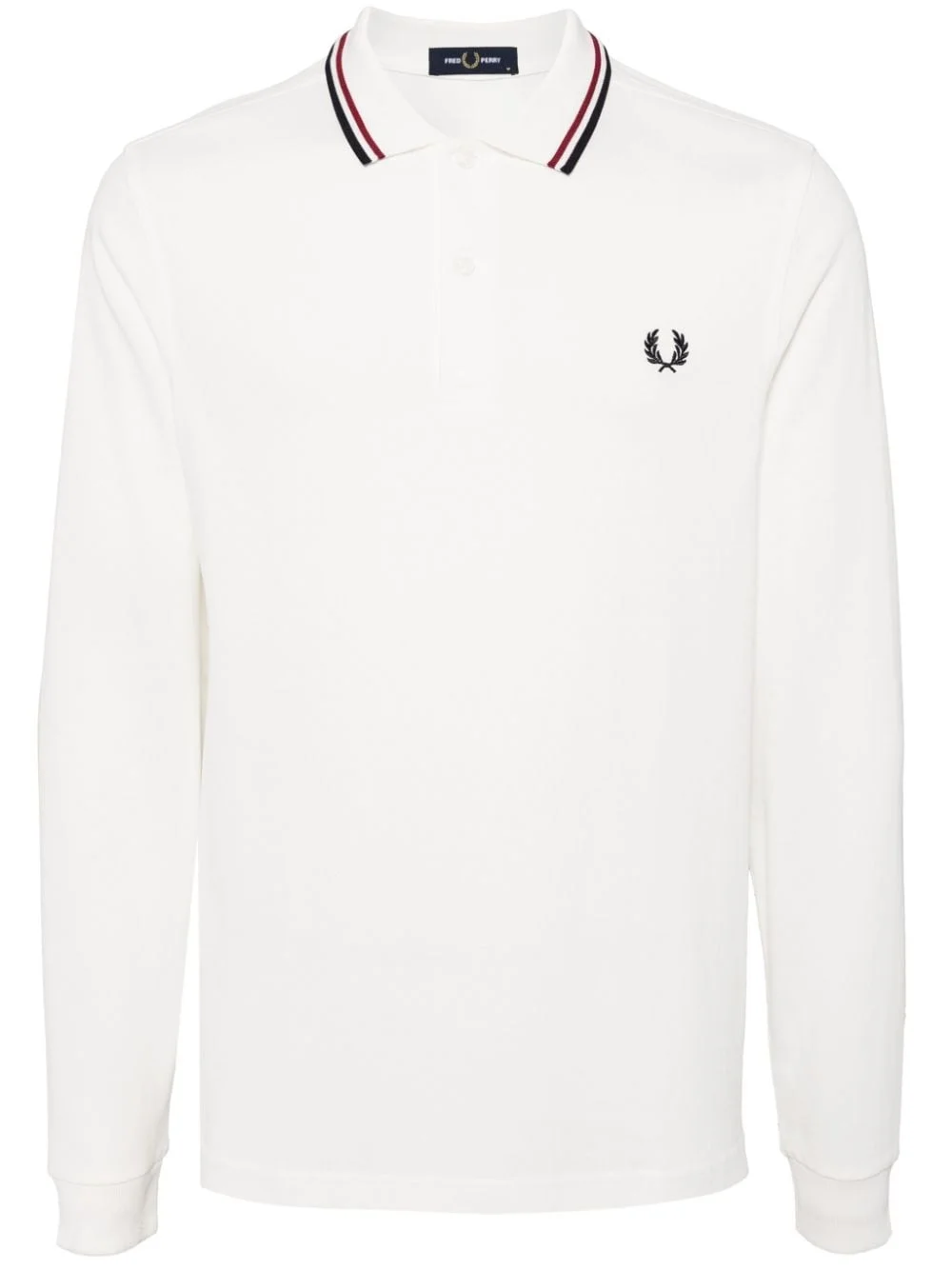 twin tipped polo shirt Highlights - Snow white/burnt red/navy blue - Cotton - Pique weave - Embroidered logo at the chest - Striped tipping - Polo collar - Front button placket - Long sleeves - Ribbed cuffs - Regular fit Imported Composition Cotton 100% SIZE & FIT Model measurements Height 6 ft 2 in(1.89 m) Bust/Chest 35.03 in(89 cm) Hips 34.64 in(88 cm) Waist 28.34 in(72 cm) Measurement CHEST 38.58 in(98 cm) LENGTH 27.55 in(70 cm) SLEEVE LENGTH 26.77 in(68 cm) Shoulder Width 16.53 in(42 cm) FittingInformation Designed for a regular fit, this polo shirt offers a comfortable loose fit throughout the body Made from a midweight non-stretch fabric, this piece offers minimal elasticity when worn