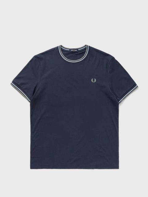 The Fred Perry T-shirt with double stripes combines sporty retro style with modern comfort. Made from soft cotton, it is comfortable and breathable. - Cotton jersey fabric - Regular fit - Round neckline and double stripe cuffs - Contrasting embroidered laurel wreath logo on the left chest - Embroidered Fred Laurel Perry logo on the center of the chest Article Number: M1588V-Z47 Gender: Men Color: DRKAIRF/LIC/BAYL Material: 100% Cotton