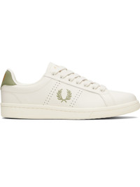 Low-top buffed leather sneakers. · Lace-up closure · Logo printed at padded tongue and heel tab · Padded collar · Perforations at sides · Logo embroidered at outer side · Mesh lining · Treaded rubber sole Supplier color: Light ecru Upper: leather. Sole: rubber. Made in Viet Nam 252719M237001