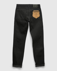 Sewn in the USA from rigid Japanese selvedge denim, the Modesto from Freenote is the brand’s Western straight-leg denim, complete with custom detailing. Woven by Yoshiwa Mills in Japan, the denim features a sulfur-dyed black warp with contrasting grey weft yarns. The denim sports a crisp surface texture and a soft brushed interior. Finished with signature Freenote deatiling include a two-piece waistband, Japanese hickory stripe pocket bags, custom-branded hardware, and acorn-shaped rear pockets. - 14oz selvedge denim from Yoshiwa Mills - Black warp, grey weft interior - Freenote's tapered "Portola" fit is designed with additional room in the top block and thighs with a moderate taper from the knee down - Red selvedge ID - Two-piece waistband to prevent overstretching - Custom Freenote-branded leather patch - Custom Freenote-branded rivets and hardware - Japanese hickory stripe pocket bags - Hidden selvedge coin pocket detail - 100% cotton - Made in USA