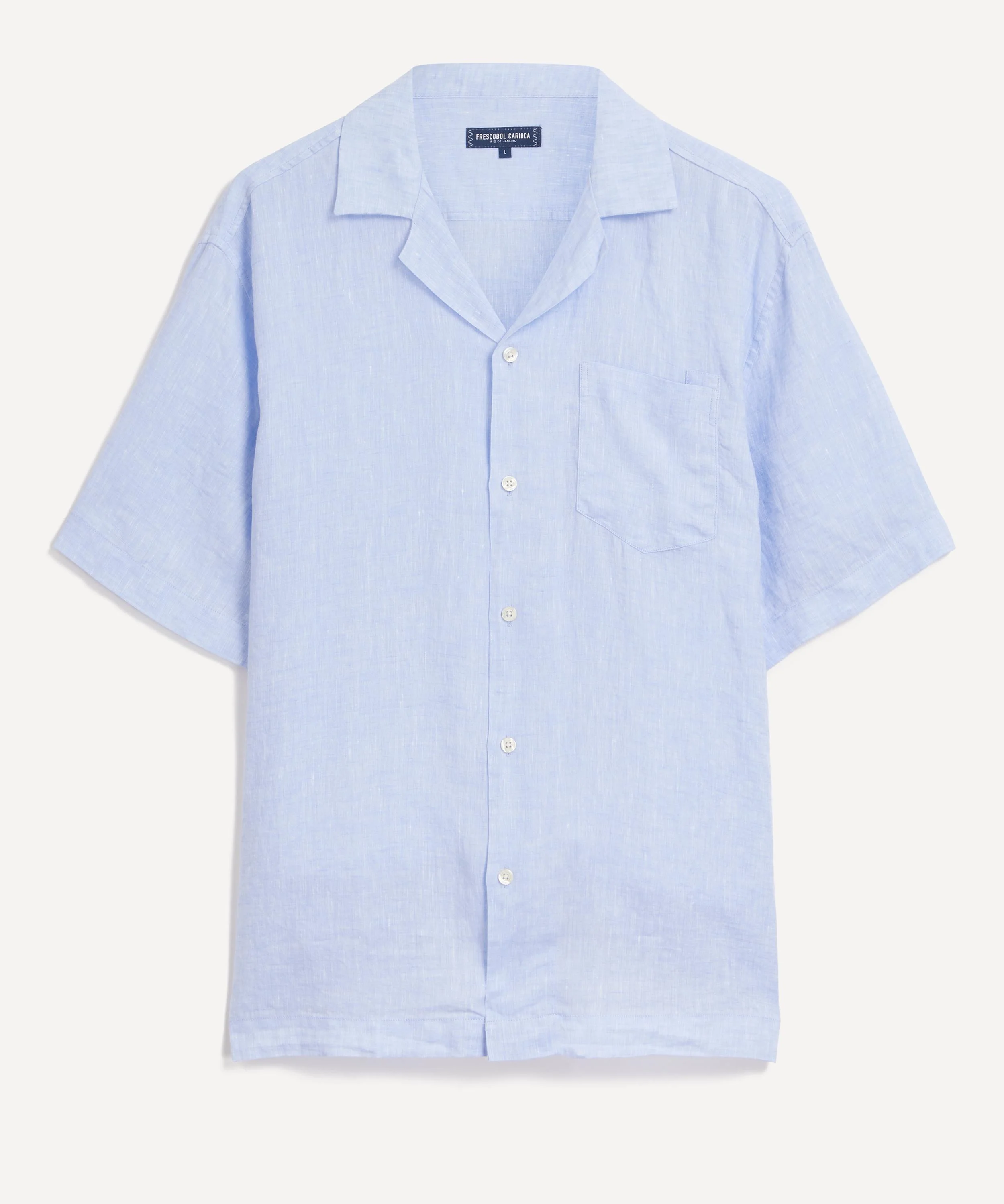 DETAILS Linen shirt Relaxed fit Short sleeves Camp collar Button closure Single chest patch pocket Imitation mother-of-pearl buttons SIZE & FIT Model is 184cm/6'0.5"; Chest: 94cm; Waist: 79cm and wears a size M COMPOSITION & CARE 100% Linen Machine wash at 30°C