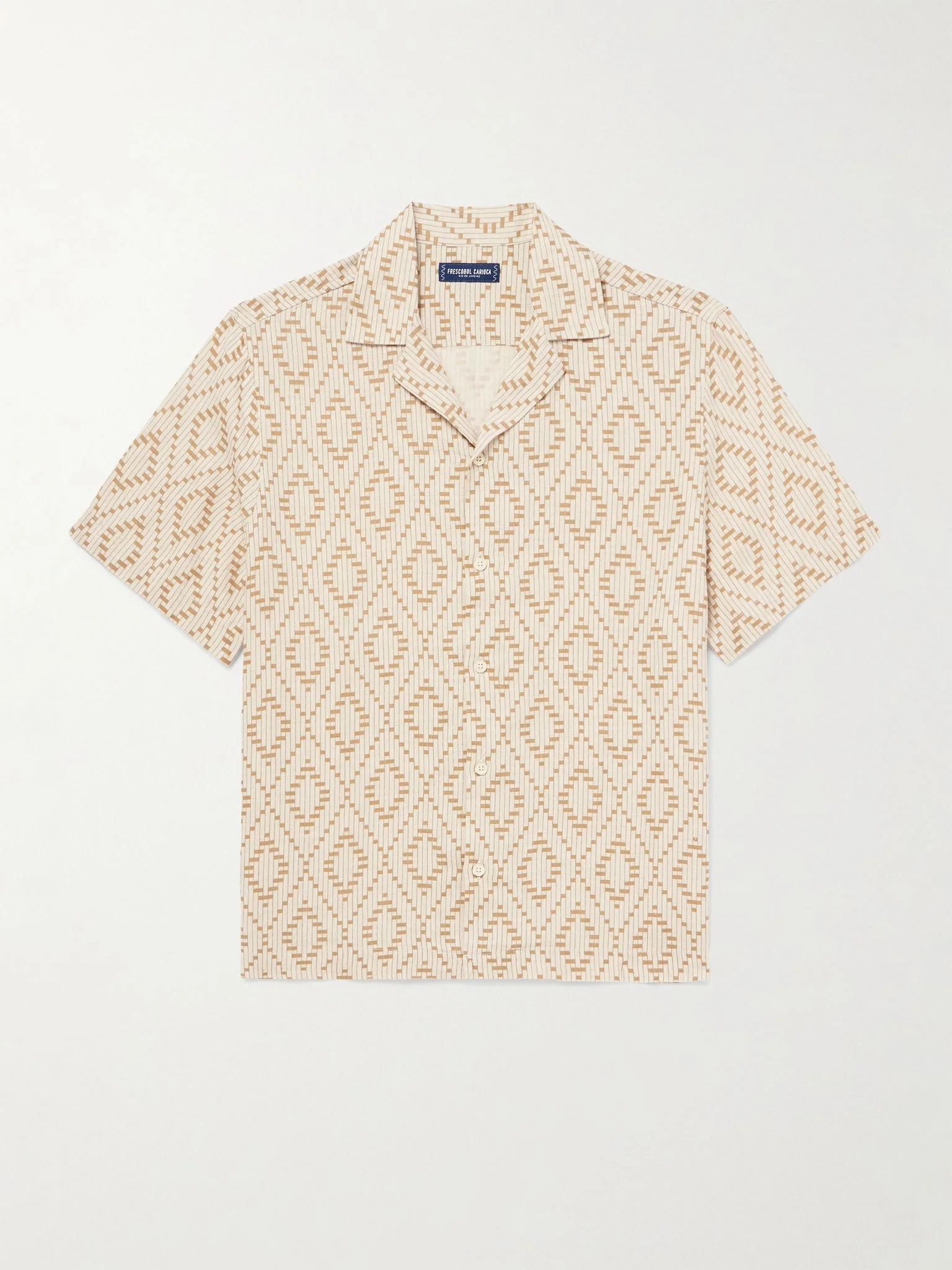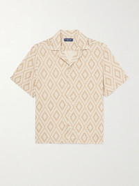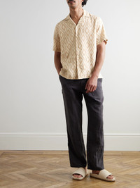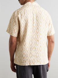 Frescobol Carioca's prints are inspired by the mosaic boardwalks of Rio de Janeiro. This 'Roberto' shirt is cut with a relaxed camp collar from breathable linen in a geometric pattern. Size & Fit - Model wears a size larger to achieve a looser fit - Mid-weight, non-stretchy fabric - Model is shown wearing a M - Model measures: chest 38"/ 96cm, height 6'0"/ 183cm Details & Care - Tonal-beige linen - Button fastenings - 100% linen - Machine wash