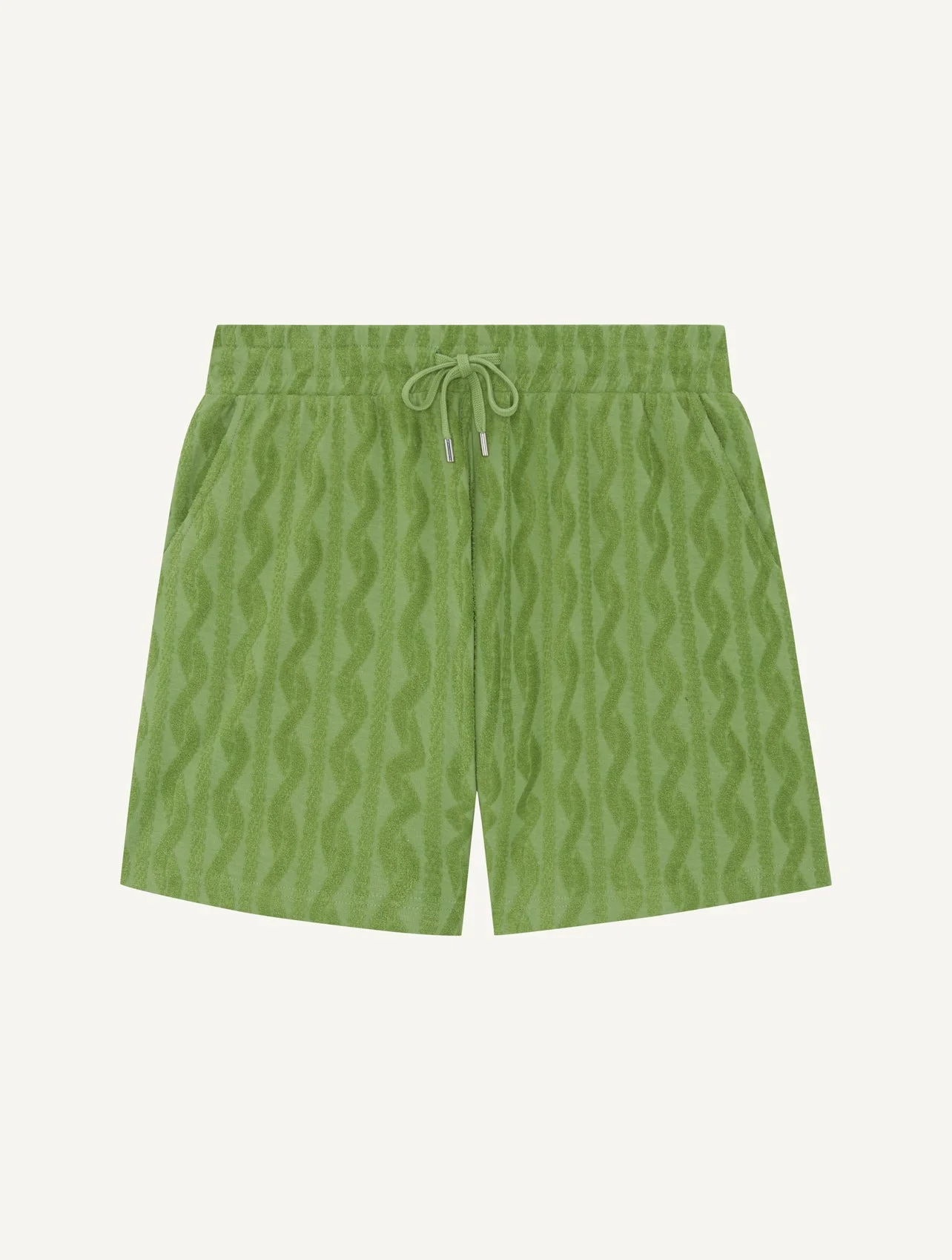 A FRESCOBOL take on warm-weather loungewear, our Augusto shorts are a lightweight organic terry cotton in an intricately crafted jacquard fabrication. With an adjustable drawstring waist and cut for a relaxed fit, pair with matching Roberto shirt for superior comfort. Product Details COMPOSITION: 68% Cotton, 27% Lyocell, 5% Linen CARE: Machine washable at 30 degrees DETAILS: Regular fit Open camp collar One-piece buttonless collar Side slits MODEL MEASUREMENTS SKU 2660-868 Model wears size M Model measures: Height: 6"1, Waist 31", Chest 39.5''
