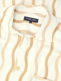 For relaxed days and resful nights, our Cassio short-sleeved sleepwear shirt is made from a beautiful linen-blend. Adorned with a soothing iteration of our signature Copacabana Wave design, this shirt pairs with Lucas sleepwear shorts for a unisex pyjama set suitable for sharing. Product Details COMPOSITION: 85% viscose 15% linen CARE: Machine washable at 30 degrees DETAILS: Relaxed fit Front patch pocket Classic collar Imitation mother of pearl front buttons MODEL MEASUREMENTS SKU 2680-870 Model wears size M Model measures: Height: 6"1, Waist 31", Chest 39.5''