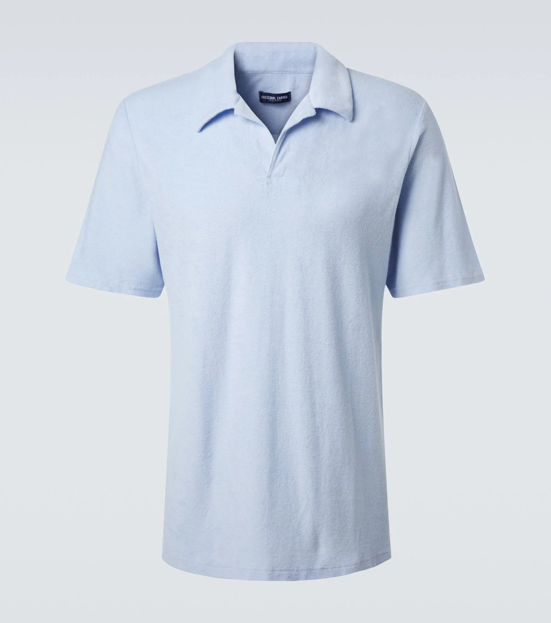 Inspired by the spirit of Rio de Janeiro, Frescobol Carioca's vacation styles effortless transition from beach to boardwalk. The Faustino polo shirt is cut from cotton-blend terry in a relaxed silhouette for a casual look. Product Details - Material: 68% cotton, 27% lyocell, 5% linen - Care instructions: machine wash at 30 degrees - Made in Portugal - Designer color name: Baby-Blue - Item color: blue - Collar: polo collar - Sleeves: short-sleeved - Item number: P01061399 Size & Fit - True to size - Straight fit - Slightly stretchy fabric - Falls below the hip - Height of model is 189cm-74.5" and wears a size L