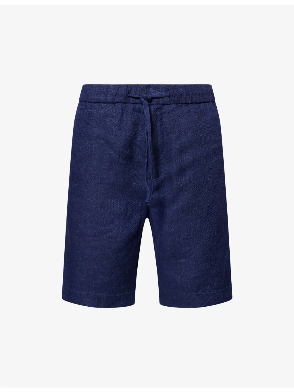 PRODUCT DETAILS - Frescobol Carioca linen and cotton-blend shorts - 54% linen, 46% cotton - Exposed button and concealed zip-fly fastening at front - Regular fit, mid-rise, straight leg, drawstring waistband, partially elasticated at waist, two slip pockets at front, buttoned welt pocket at back - Machine wash cold - Model is 6ft 2in/1.88m and wears a size UK 30 - Midweight, non-stretch Ref: R04150247