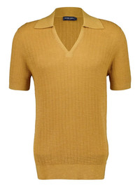 Joaquim ribbed V-neck polo shirt Highlights - Tuscan sun - V-neck - Ribbed texture - Short sleeves - Polo collar - Cotton blend Imported Composition Cotton 50%, Viscose 40%, Linen/Flax 10% Washing instructions Read Manufacturer Guidelines