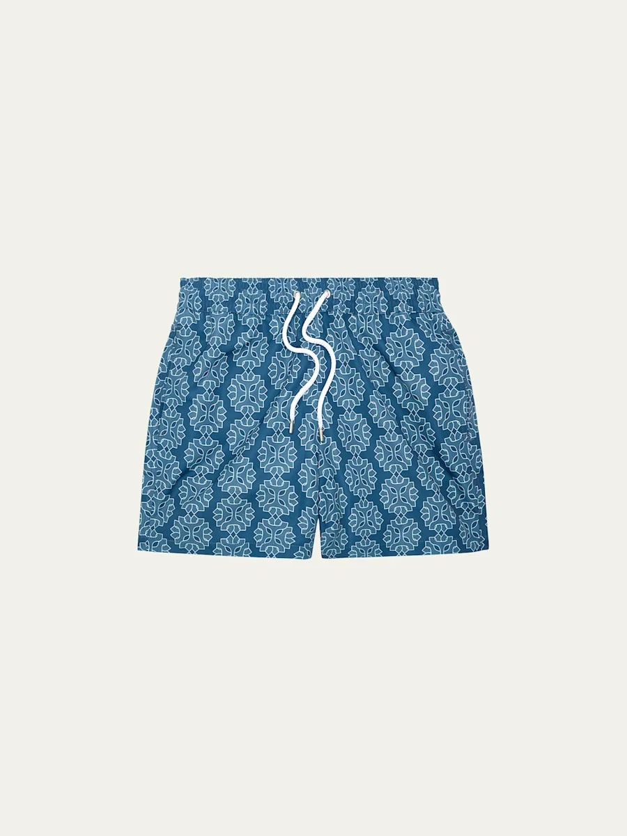 Frescobol Carioca swim shorts in medallion print Elasticized drawstring waist Side slip pockets Relaxed legs Pull-on style Polyester Lining: Cotton Machine wash cold Made in Portugal Model is 6'1"/185cm. Online Inquiries: BGS21_NBPUD| Store Inquiries: #4688379