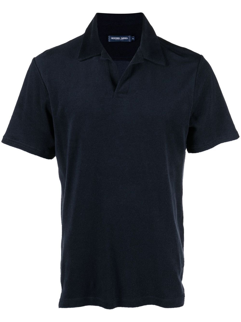 Faustino Terry buttonless polo shirt Frescobol Carioca's refined aesthetic is showcased with this Faustino Terry buttonless polo shirt. Woven in a navy-blue cotton-blend construction, the piece is cut to a boxy silhouette. Imported Composition Cotton 55%, Lyocell 40%, Linen/Flax 5% SIZE & FIT Model measurements Height 6 ft 1 in(1.86 m) Bust/Chest 37 in(94 cm) Hips 37 in(94 cm) Waist 29.13 in(74 cm) Measurement CHEST 37 in(94 cm) SLEEVE LENGTH 17.71 in(45 cm) Shoulder Width 16.92 in(43 cm) FittingInformation This piece fits true to size. We recommend you get your regular size Cut for a relaxed fit Made with a mid-weight fabric