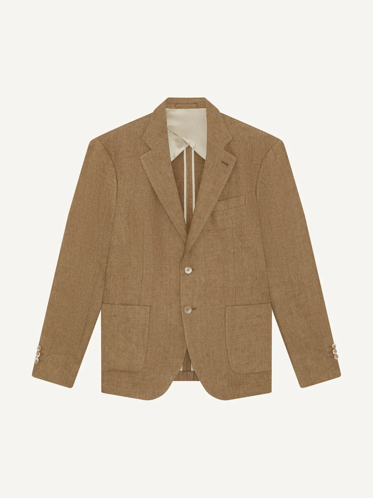 Paulo linen blazer is the epitome of relaxed tailoring. Imagined by our Head of Design, trained on Savile Row, a soft shoulder and unstructured inner make the blazer both comfortable and versatile. Pair with matching Affonso tailored trousers for a relaxed lightweight suit. Product Details COMPOSITION: 100% linen Lining: 100% viscose CARE: Do not wash, dry clean only DETAILS: Two buttons Single breasted Half canvas Notch lapel with working lapel buttonhole Butterfly lining 2 internal jet pockets with button closure 2 external patch pockets 1 external breast pocket Three button cuff detail MODEL MEASUREMENTS SKU 2658-872 Model wears size M Model measures: Height: 6"1, Waist 31", Chest 39.5''