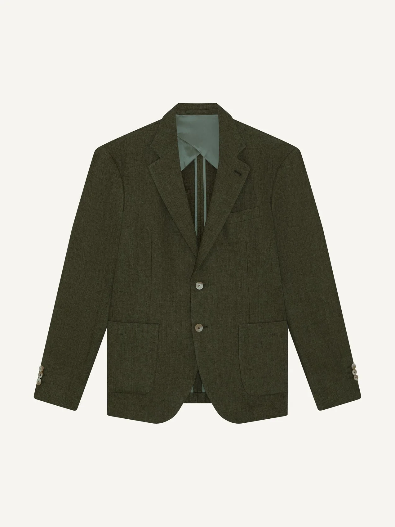 Paulo linen blazer is the epitome of relaxed tailoring. Imagined by our Head of Design, trained on Savile Row, a soft shoulder and unstructured inner make the blazer both comfortable and versatile. Pair with matching Affonso tailored trousers for a relaxed lightweight suit. Product Details COMPOSITION: 100% linen Lining: 100% viscose CARE: Do not wash, dry clean only DETAILS: Two buttons Single breasted Half canvas Notch lapel with working lapel buttonhole Butterfly lining 2 internal jet pockets with button closure 2 external patch pockets 1 external breast pocket Three button cuff detail MODEL MEASUREMENTS SKU 2658-55 Model wears size M Model measures: Height: 6"1, Waist 31", Chest 39.5''
